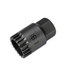 The BracketPlug is especially designed for Shimano cartridge type bottom brackets. The BracketPlug fits on our DriveForce and together they make the perfect tool to get the job done. The strong and durable steel socket gives you grip on the bracket and does the job in seconds!